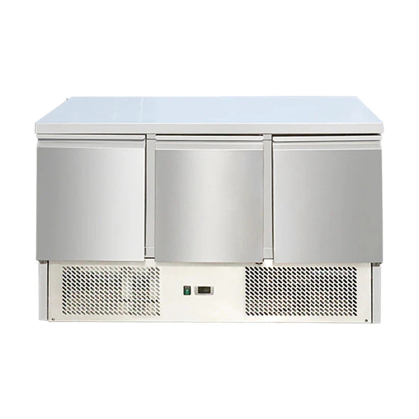 The spacious work surface allows comfortable use of your preparation equipment such as cutting boards, knives and bowls. The refrigerated interior space offers enough capacity to store fresh vegetables, various sauces and other food products.