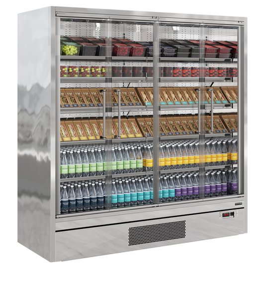 The TEFCOLD Galaxy+ FGD (Full Glass Door) range, finished in mirror stainless steel: our latest innovation in plug-in multidecks. We've combined an expanded display area and optimized cabinet efficiency with frameless, full-vision glass doors, off...