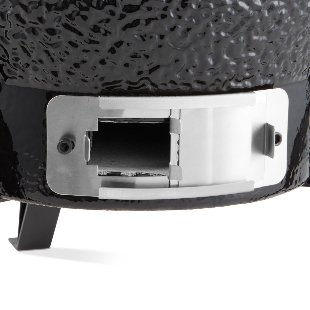 The adjustable air supply at the bottom and the air outlet in the lid ensure optimal air circulation. You can use it to adjust the temperature of your dishes. The adjustable grill plates are also beneficial as they allow you to place your dishes at the ideal height above the fire. The wall and fire bowl are ceramic, ensuring the Kamado won't be affected by high temperatures or temperature differences.