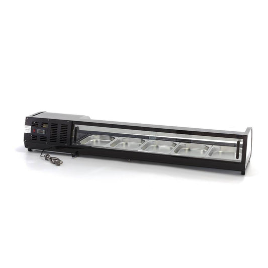 In this tabletop tapas display, you can present a selection of smaller food items to potential customers, while keeping them at the ideal temperature. It's the perfect way to showcase various food items such as tapas, sushi or fish. This version h...
