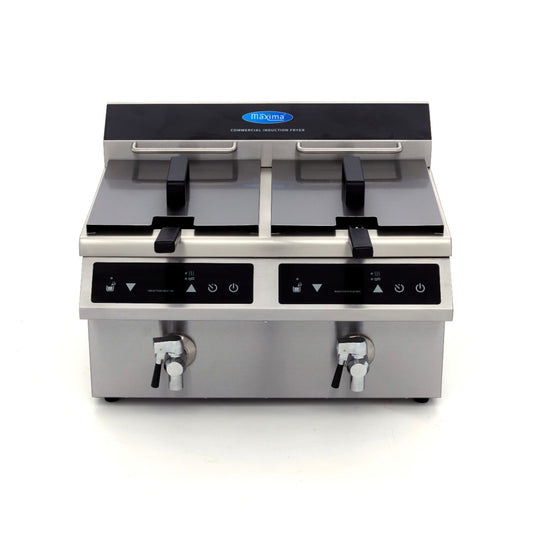 With this double induction fryer, you can fry twice as many products using the two 8 litre baskets. Changing the frying oil is also quick and easy with the handy drain tap.Thanks to the fryer's induction heating, the temperature can be precisely r...