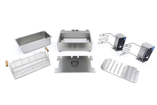 With this catering fryer, you can fry twice as many snacks thanks to the two 16 litre pans. This electric deep fryer also boasts a drain tap to make changing oil much easier.For making fries, snacks, spring rolls, vegetables or even fruit: with th...