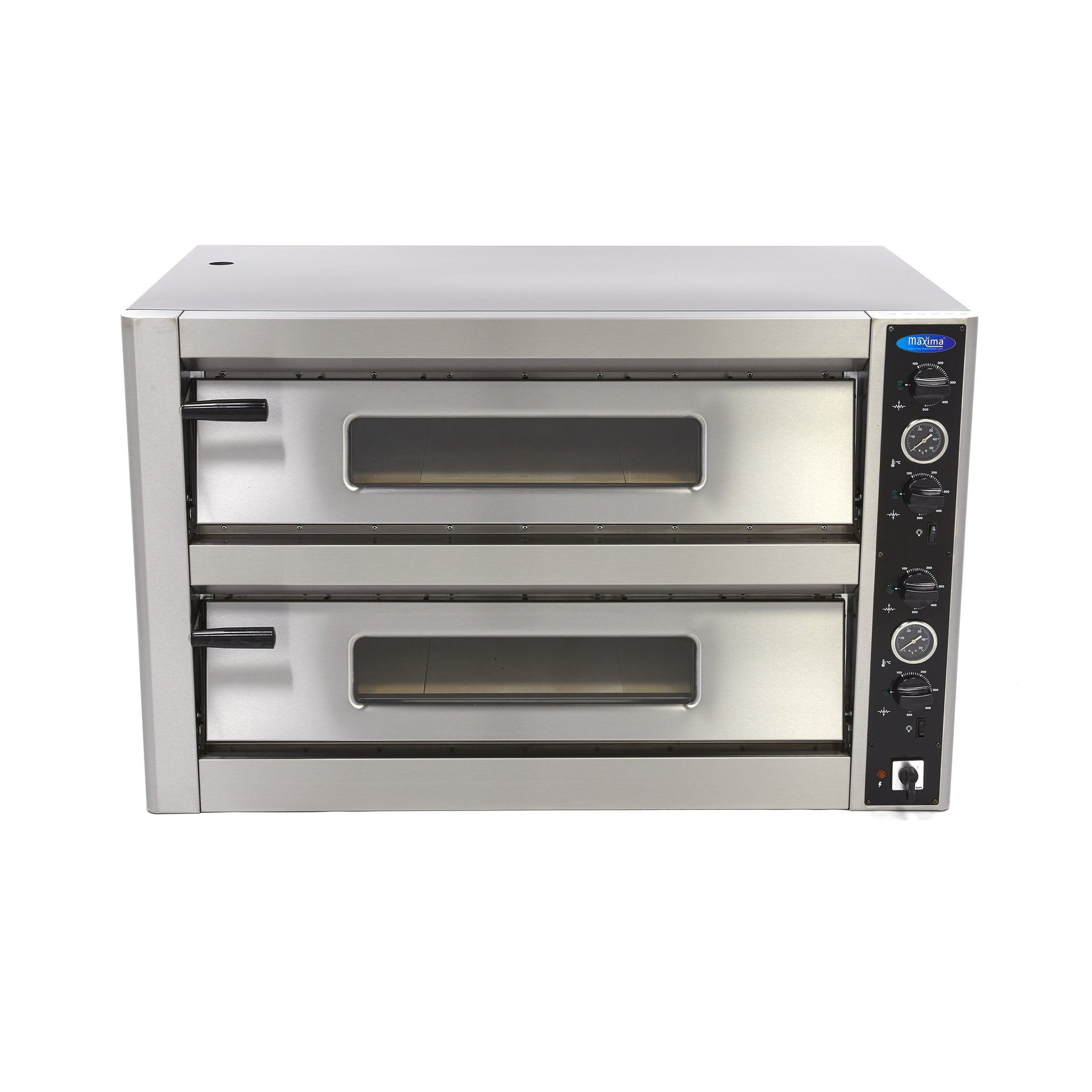 Bake 12 pizzas of 30cm quickly and easily with this deluxe double pizza oven. The compact and portable model is equipped with a thermostat that allows you to easily adjust the temperature above and below.