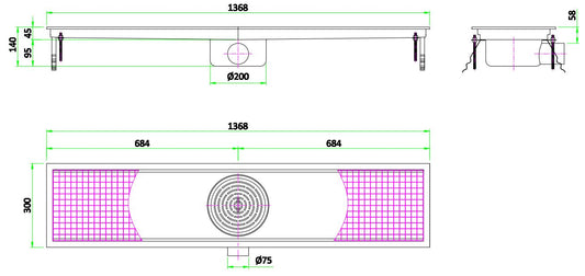SpecificationsProduct Dimension: W:1368 X D:300 X H:140 mmSKU: 7075.0115Material: Stainless steel Aisi 304EAN code: 7435137831822Gross weight (kg): 26