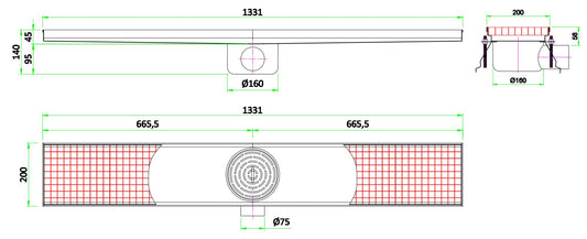 SpecificationsProduct Dimension: W:1331 X D:200 X H:140 mmSKU: 7075.0135Material: Stainless steel Aisi 304EAN code: 6017431694610Gross weight (kg): 16