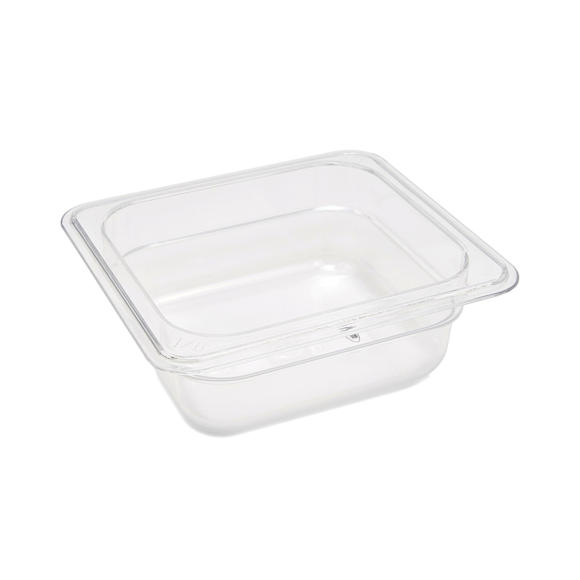 This 1/6 transparent polycarbonate Gastronorm container is 6,5cm deep and has a capacity of one litre. Polycarbonate GN containers are stackable, dishwasher safe and virtually unbreakable. You can use this container with many different kinds of catering equipment, such as ovens, cooling equipment, bain maries and chafing dishes.