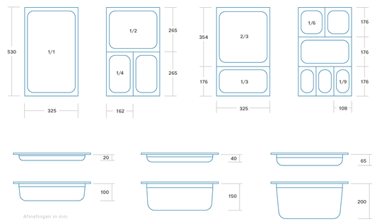 This 1/6 GN container is 6,5cm deep and has a capacity of 1L. With a size of 17,6 x 16,2cm, the stainless steel GN container is stackable and dishwasher safe. You can use this GN container in all kinds of catering equipment, such as the oven or ba...