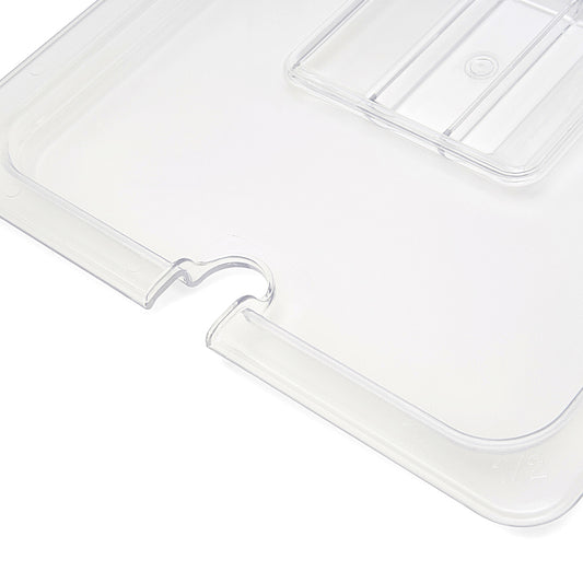 This 1/4 transparent Gastronorm lid is made from polycarbonate and is both stackable and dishwasher safe. It is virtually unbreakable. You can use this lid to cover the polycarbonate GN containers from Maxima. It is compatible with many different ...
