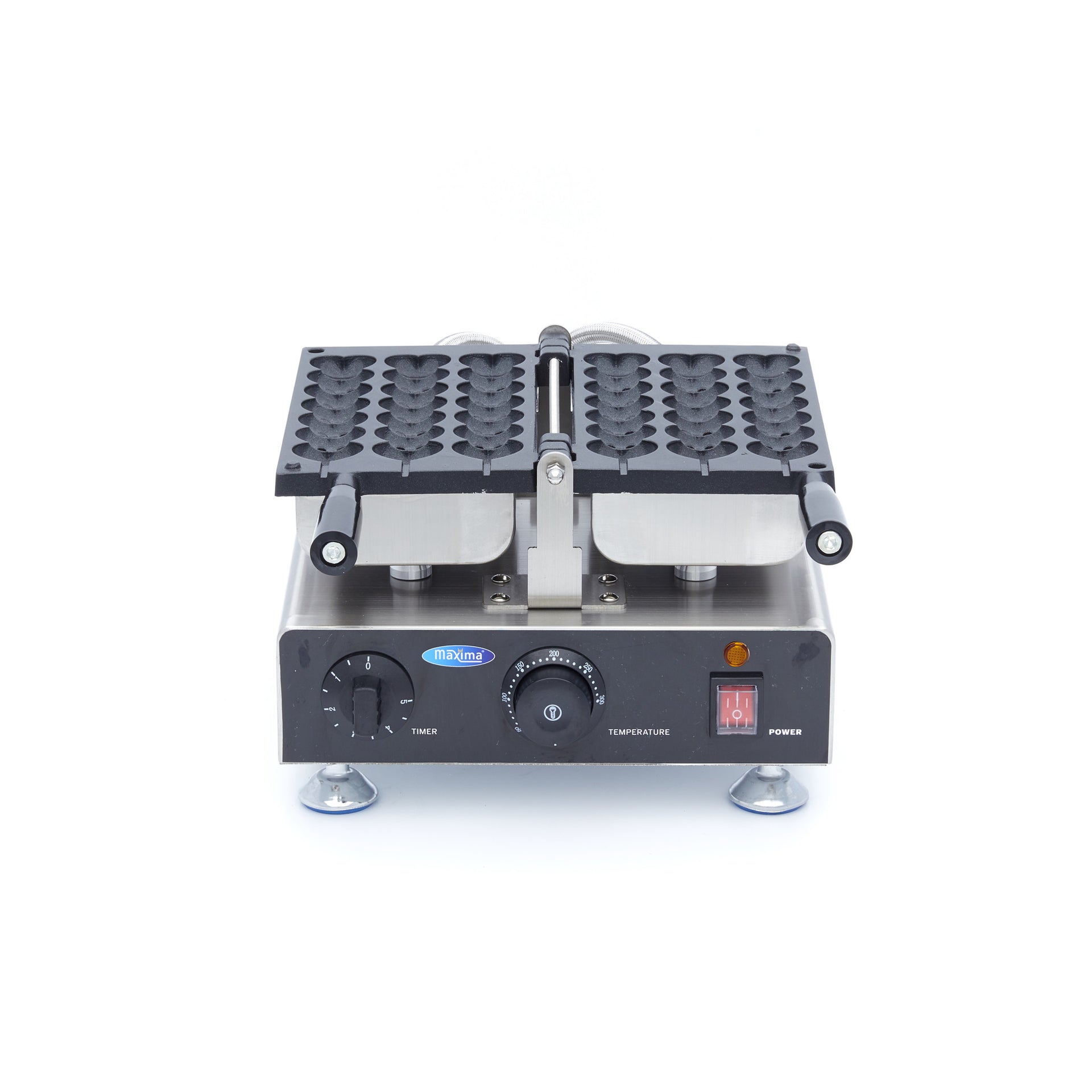 This electric waffle maker is perfect for market stalls and cake stands, but also for restaurants and cafes. After all, a cheerful waffle on a stick is not only ideal as a snack but also as a dessert. You can set the temperature yourself between 50 and 300°C and with the timer you will never forget to take them off. Thanks to the fast-heating baking trays, the lollipop waffles are ready in just a few minutes. The baking tray has a special indentation for the stick. This allows you to put the stick in the right place in one go, and it will always be straight and in the middle of the waffle.