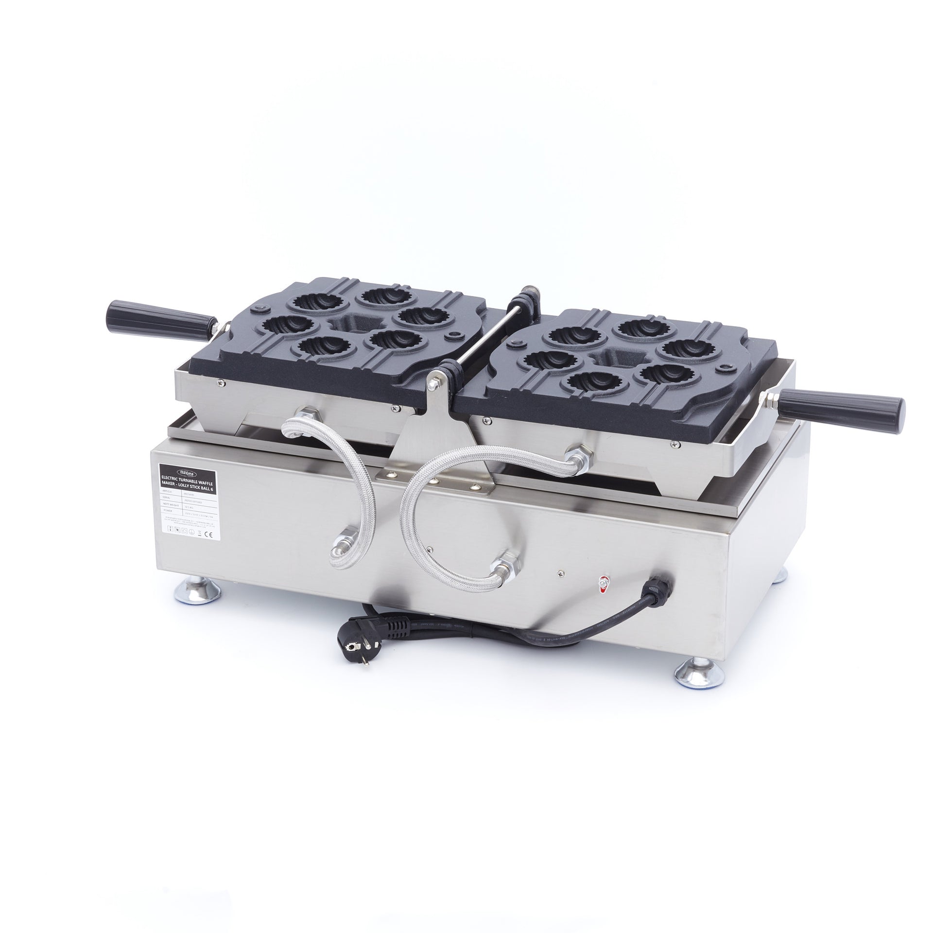 This electric waffle maker comes made in a rotating model so you can turn all your cak pops in one go without having to remove them from the baking tray. This ensures that the batter can collapse on both sides so the cake pops always have a perfect round shape on both sides. The appliance stands firmly on four stainless steel feet so that it remains stable while turning. The baking tray has a special notch for the stick. This allows you to put the stick in the right place in one go and it will always be straight and in the middle of the cake. Let it bake for a few minutes and your cakes on a stick are ready to decorate with, for example, chocolate.