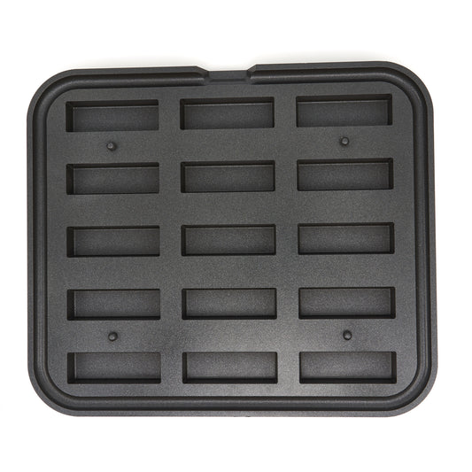 Tartlet Mould - Rectangle - 90x30/85x26 mm - 15 pieces Tartlet inner size: 85 x 26 mmTartlet outer size: 90 x 30 mmHeight tartlet: 19 mm Dimensions baking tray: W380 x D328 mm