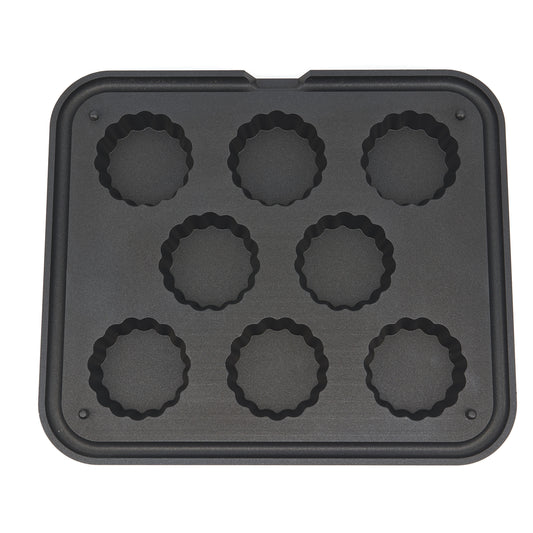 Tartlet Mould - Round - 89/65 mm - 9 pieces Tartlet inner size: Ø 65 mmTartlet outer size: Ø 89 mmHeight tartlet: 22 mm Dimensions baking tray: W380 x D328 mm