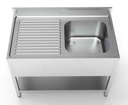 Large deep bowl All stainless sink unit Single bowl, single drainer 40mm box section legs MODEL SBRD1200DIMENSIONS W1200 x D700 x H850BOWL W500 x D500 x H300WASTE & OVERFLOW 48mm X H240 (strainer type)WEIGHT 33 Kg