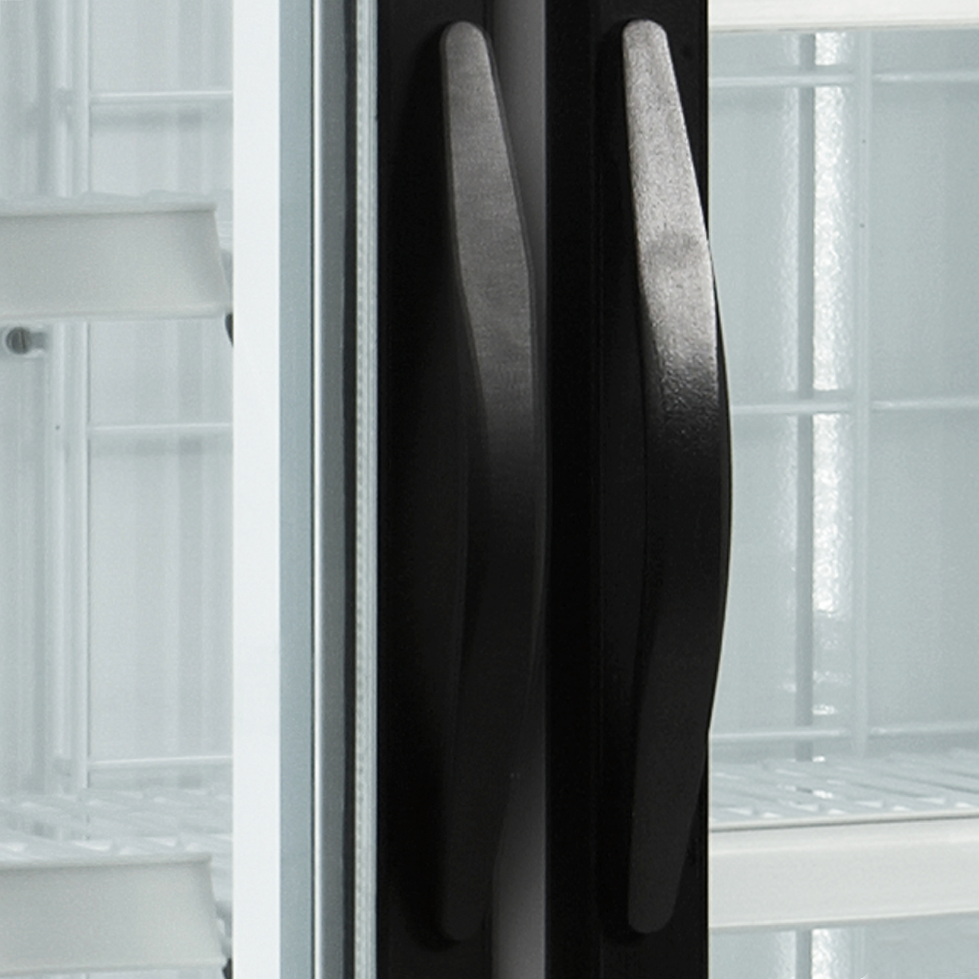 - Fully automatic|Fan assisted cooling|Automatic defrost|Lock|Rollers and adjustable feet |Adjustable shelves|Epos Ticket Strips|LED interior light with switch|Digital controller and temperature display|Self-closing hinged glass doors|LED Light canopy with switch|Anti mist glass|Replaceable door gasket
