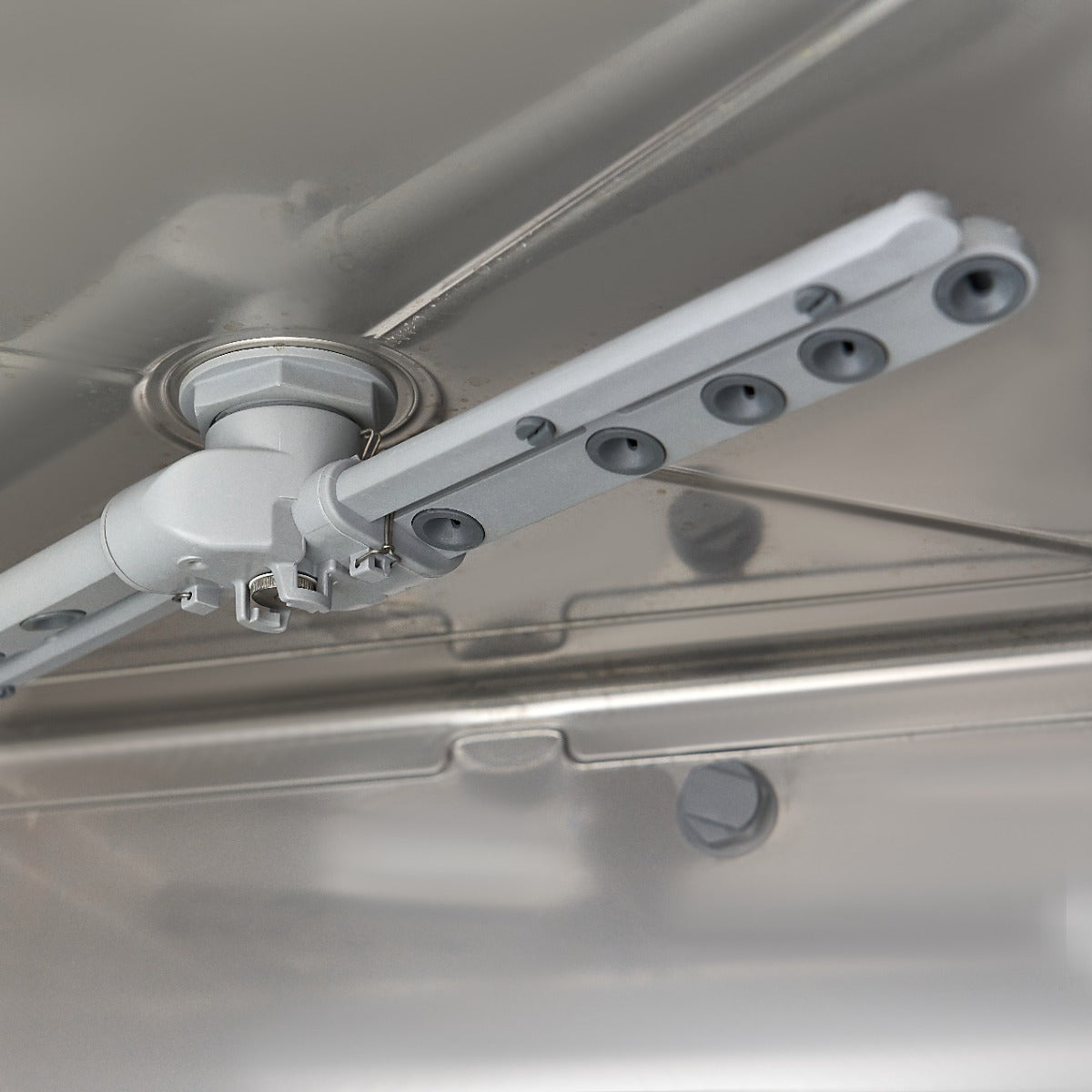 In the professional kitchen, where dirty dishes are a daily chore, a quick and efficient dishwasher is indispensable. Thanks to two complete wash programmes of 100 and 190 seconds, you can get all the dishes cleaned quickly and easily. When the cleaning is done, dishes are rinsed with hot water so that everything can dry quickly, ready for the next use. Not only is it fast, but at less than 65dB, it's also a very quiet dishwasher.