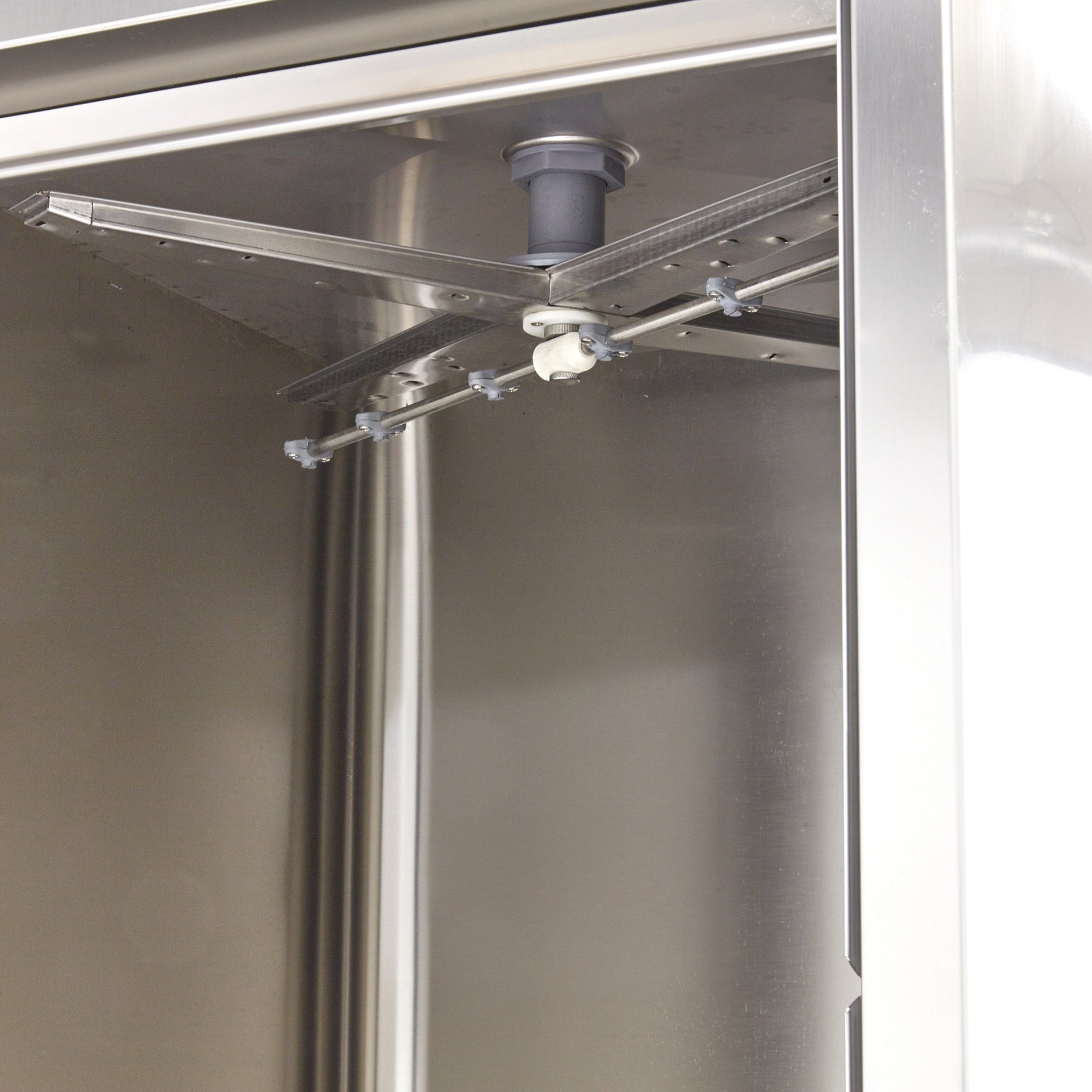 Thanks to the stainless steel casing, this heavy duty utensil washer is easy to clean. In addition, stainless steel is also very durable so your appliance won't be prone to damage or scratches. The wash arms are made from special ABS and can be cleaned easily with a little soap and warm water. To clean the inside, use a descaler and a special cleaning agent. The utensil washer comes with rinse and soap pumps. No drain pump is included because the water runs off naturally.