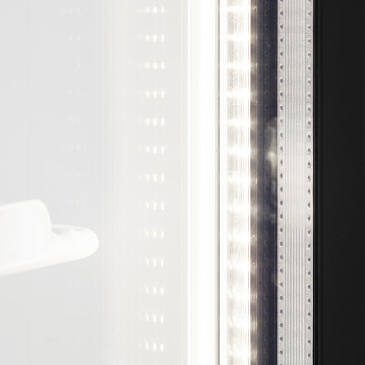 - High efficiency compressor and EC fans|Low E glass door – equivalent to triple glazing|Fully automatic|Fan assisted cooling|Adjustable shelves (split level)|Adjustable feet|LED interior light with switch|Thermometer|LED Light canopy with switch|...