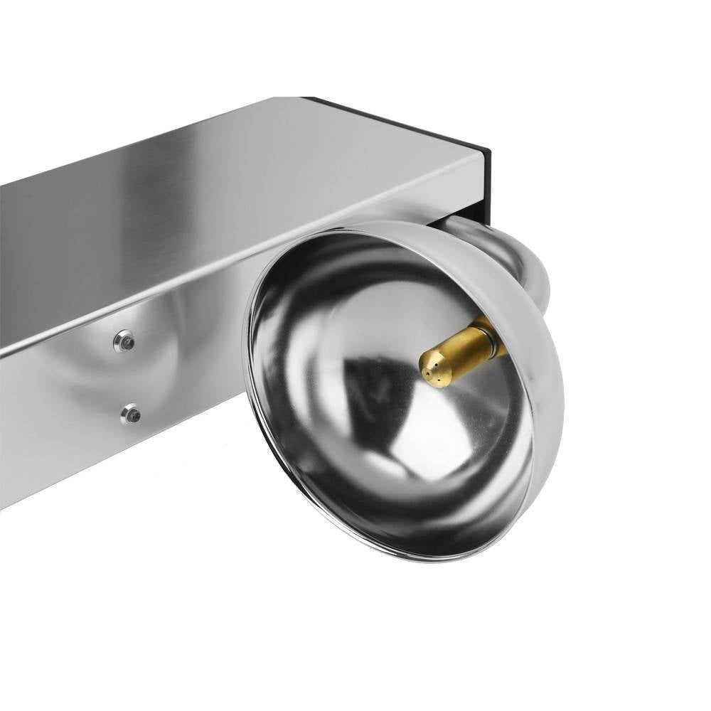 This professional glass freezer is simple to operate. First, connect the glass freezer to a tank of liquid carbon dioxide. Then, open the gas cylinder and hold a glass under the head of the glass freezer. With your other hand, press the head down for a few seconds. Thanks to the carbon dioxide, the glass cools down to about -15⁰C within seconds, creating a thin layer of ice on the glass. Glasses are also immediately sterilised during the freezing process. This glass freezer is very robust. The aluminium construction of the appliance increases its lifespan and allows it to withstand intensive daily use. Lastly, the appliance comes with indicator lights that work with batteries (not included)