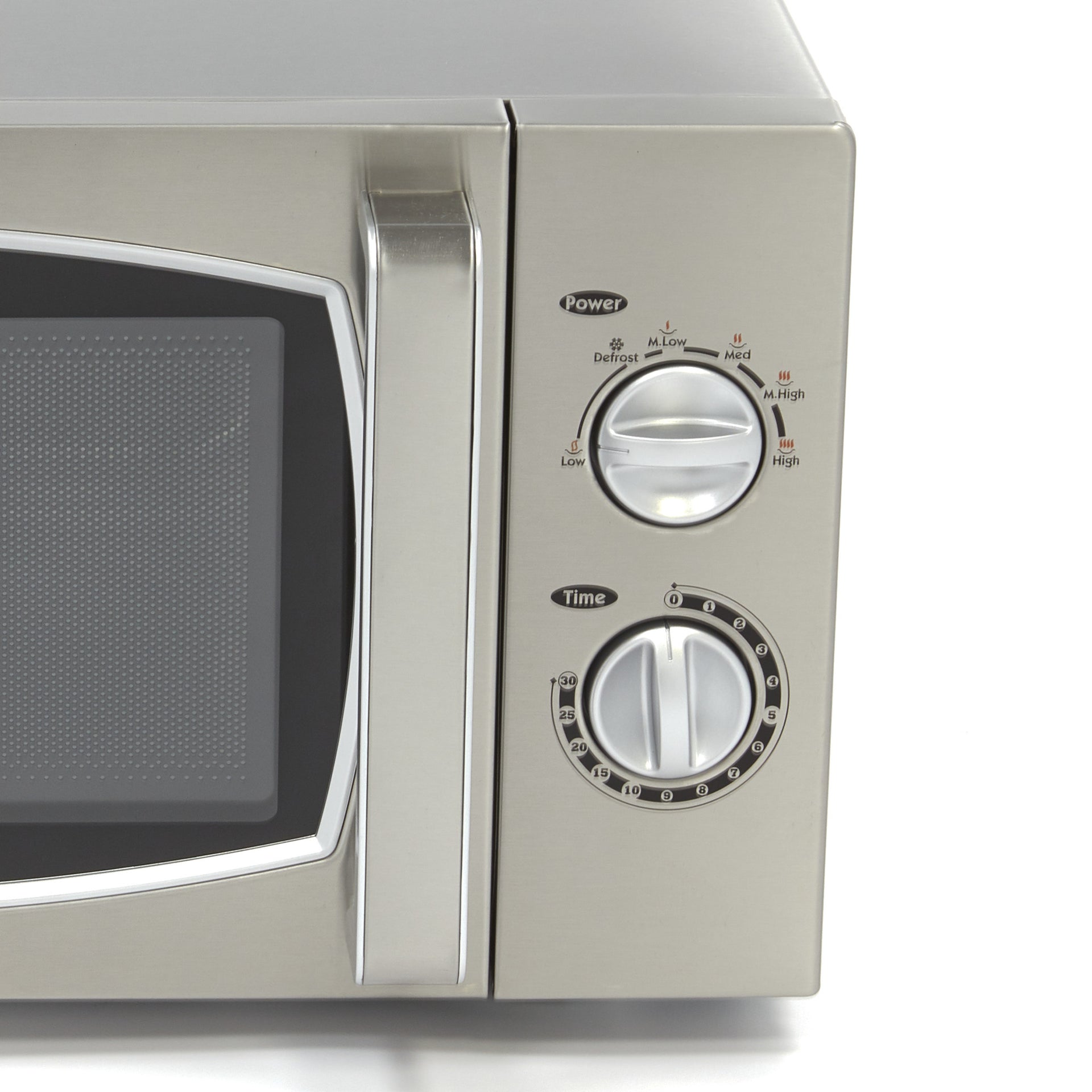 With six different programmes, ranging from low to high, you can always choose the one that suits the product you want to heat. In addition, the microwave also features a defrost mode for quickly defrosting products. The power levels are as follows: low = 20%, defrost = 42%, medium/low = 52%, medium = 73%, medium/high = 88% and high = 100%. This microwave oven is suitable for use with plates with a diameter of 33cm. The microwave also features a timer that can be set up to 30 minutes.