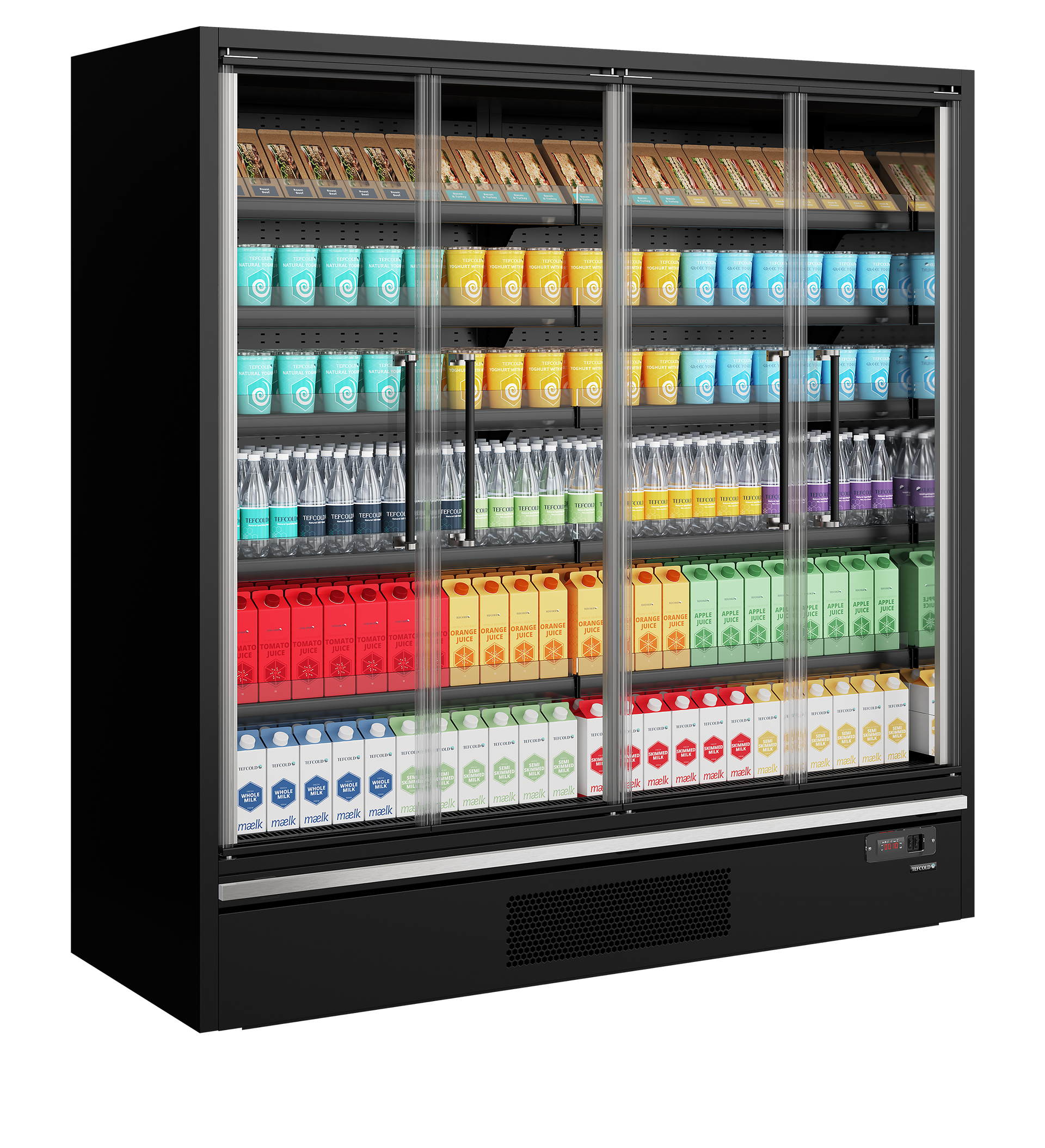 Introducing the TEFCOLD Galaxy+ FGD (Full Glass Door) range: our latest innovation in plug-in multidecks. We've combined an expanded display area and optimized cabinet efficiency with frameless, full-vision glass doors, offering enhanced product visibility that captures customers' attention. The ultra-low front and slim top canopy provide an extra 100mm of internal height, accommodating up to 5 shelves (plus base) as standard, all while maintaining an overall height of just 2005mm. With a depth of only 750mm, the unit fits through standard doors for easy installation, yet has 400mm deep shelves for maximum stock capacity. Thanks to the carefully designed refrigeration system and optimal airflow throughout the cabinets, all sizes in this range are rated A or B for energy efficiency. Each unit comes with heavy-duty adjustable shelves that can be tilted if needed, as well as EPOS ticket strips and shelf risers as standard. Optional extras include glass end-walls and multiplexing kits. EU Energy Class B|Can be multiplexed - Create uninterupted continuous line|Frameless glass doors for great product visibility|Adjustable shelves (can be tilted)|Heavy duty shelving with strengthening bar|Ticket strip and acrylic front riser as standard|Self-closing doors|Solid 40 mm endwalls with mirrored interior|Stainless steel bumper bars|Ventilated cooling|Can be multiplexed with kit (POA)