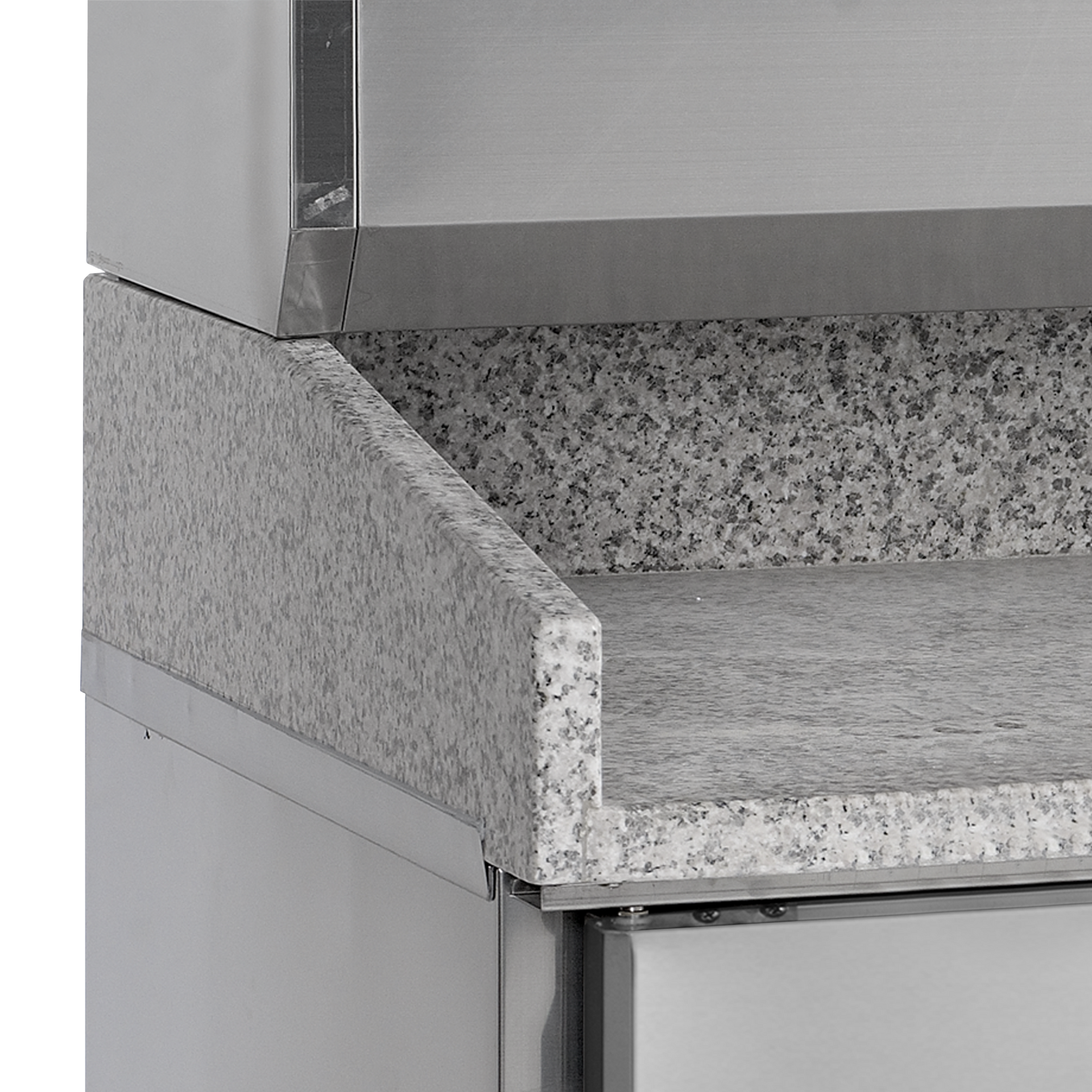The PT1310 + VK38-200 combo is where innovation meets efficiency! Crafted with a sleek stainless steel exterior, these units come with convenient guides for 7 pizza trays in each door (measuring 400x600 mm). The VK38-150 Topping unit for GN1/3 pans adds versatility to your kitchen setup. The granite worktop not only enhances durability but also elevates your workspace. With features like ventilated cooling, automatic defrost, and self-closing doors, this combination promises optimal performance and ease of use for your food preparation needs. Experience the perfect blend of style and functionality with the PT1310 + VK38-200! New design|Stainless steel|Guides for 7 pizza trays in each door (400x600 mm)|VK38-150 Topping unit for GN1/3 pans|Granite worktop|Ventilated cooling|Automatic defrost|Self-closing doors