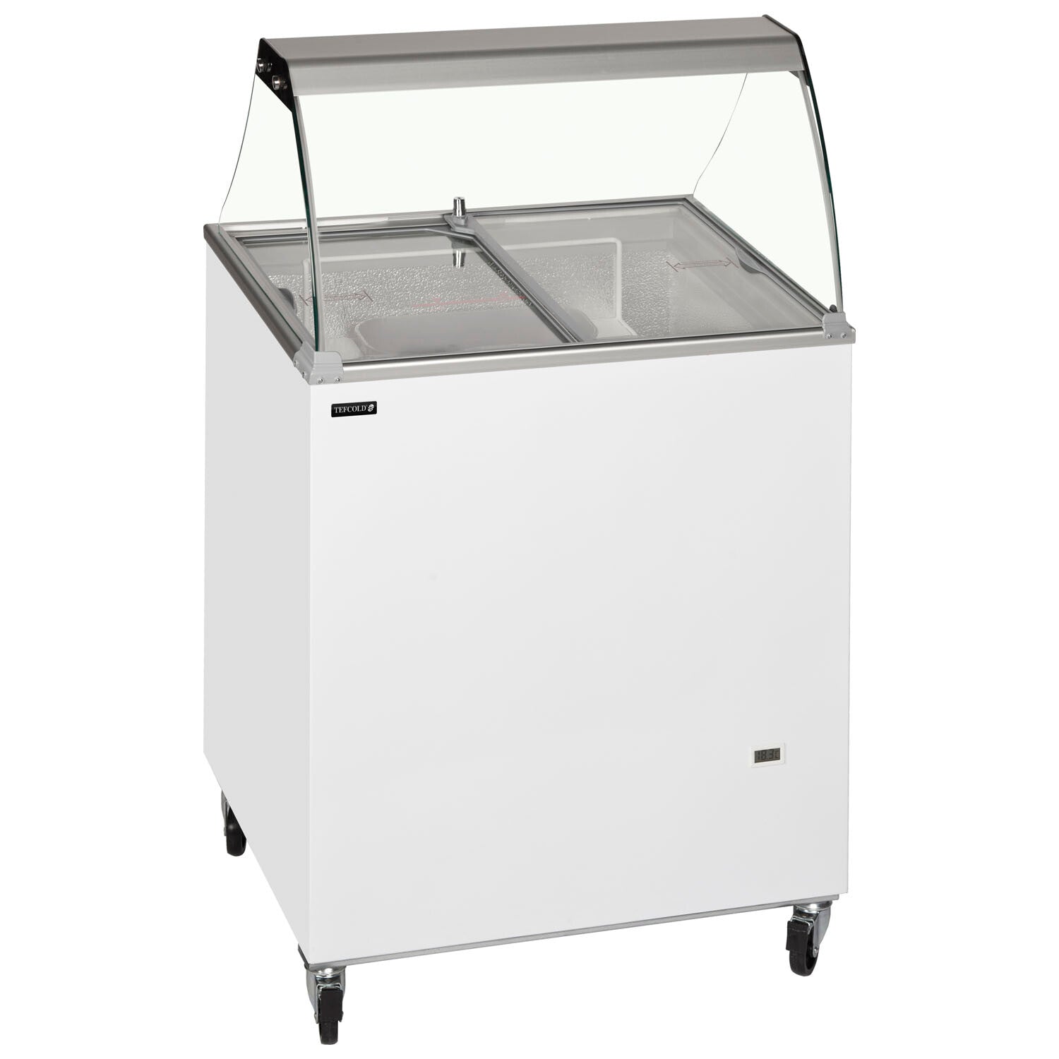 The IC200SC offers a range of features that make it a must-have for your business. With its static cooling system, your ice cream will be kept at the ideal temperature for serving customers. The castors and lock make it easy to move and store, while the digital temperature display ensures precise control. The flat sliding lids offer convenience while the energy efficiency is enhanced with the fan assisted condenser. With a curved glass canopy providing easy access and product visibility, the IC200SC is perfect for any ice cream parlour. The built-in defrost drain and storage under the tubs makes for easy cleaning and maintenance. Plus, no need for stainless Napoli pans as this unit accepts plastic Napoli size tubs. Static cooling|Castors|Lock|Digital temperature display|Flat sliding lids|Fan assisted condenser for energy efficiency|Curved glass canopy|Storage under tubs|Defrost drain|Accepts plastic napoli size tubs. Stainless napoli pans not required