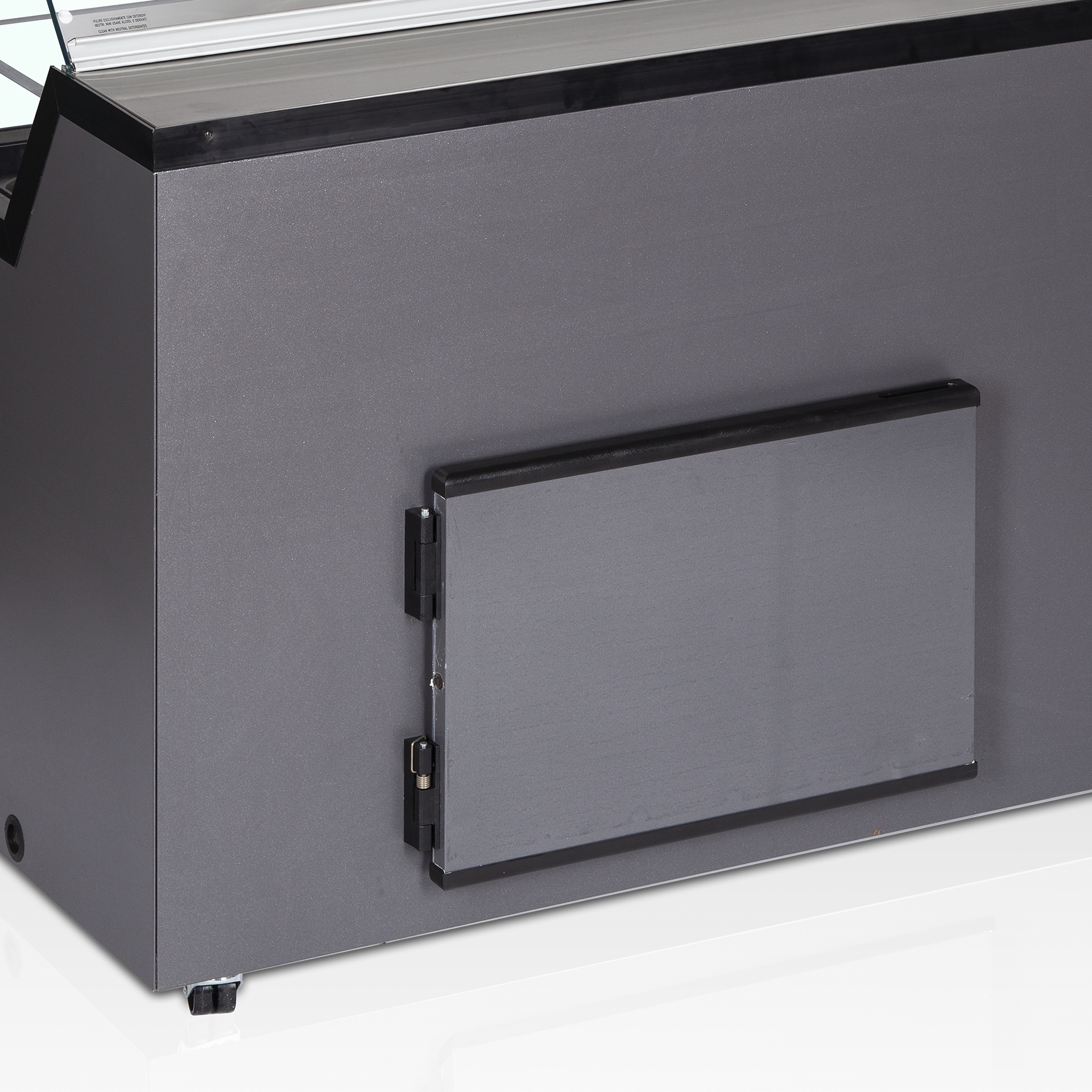 The Framec Mirabella ice cream scooping display is a leap forward in design and presentation. The Mirabella is designed to hold the ice cream as high as possible in the display giving the easiest view of the product to the customer. Traditional scooping units hold the ice cream further down within the cabinet making it harder (especially for children) to see the ice cream. It also ensures the ice cream is visible from further away, helping to draw customers in. Maximise sales and profits by maximising your display. Available in 6, 7 and 9 pan versions, the Mirabella represents value, proven reliability and a class leading display. Flat glass top|Accepts Napoli pans (not supplied) |Storage under baskets|LED interior light with switch|Static cooling|Digital controller and temperature display|Fully automatic|Lift up rear lid (2 can serve)|Castors